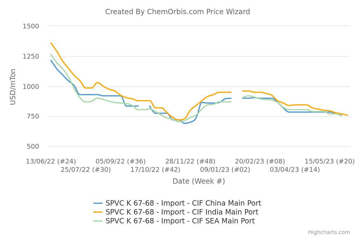 Các trung tâm sản xuất khác, đặc biệt là ở Hoa Kỳ, cũng có thể sản xuất PVC có hàm lượng VCM cao hơn. Nhà kinh doanh tại Mumbai, một nhà cung cấp thường xuyên các lô hàng của Hoa Kỳ đến Ấn Độ, lưu ý rằng hầu hết các loại VCM cao được sản xuất tại Hoa Kỳ đều được hấp thụ trong nước và chỉ xuất hiện trong thương mại quốc tế trong thời kỳ cung vượt cầu trong nước hoặc khi nhu cầu nhập khẩu tăng đột biến.